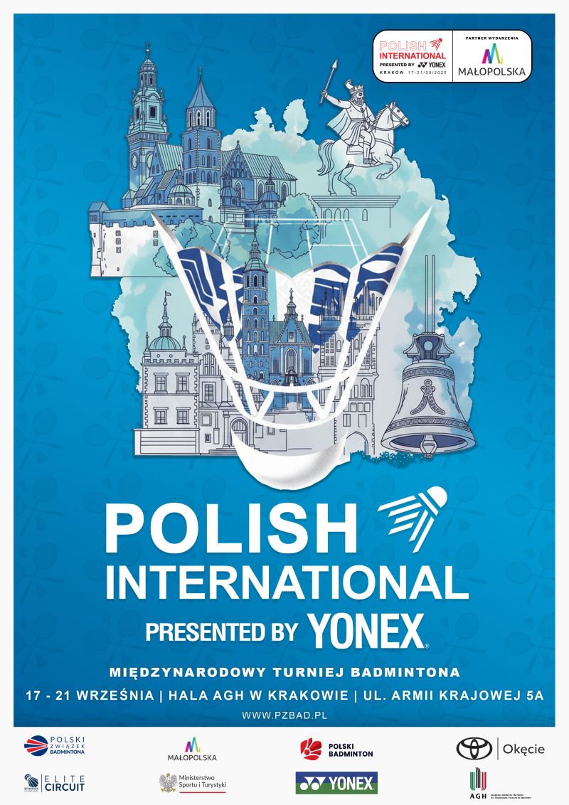 Już za niespełna kilka dni (17.09.2025) w hali Akademii Górniczo Hutniczej w Krakowie przy ulicy Armii Krajowej 5A rozpocznie się jeden z ważniejszych turniejów w kalendarzu Polskiego Związku Badmintona – Polish International 2025 presented by Yonex!
